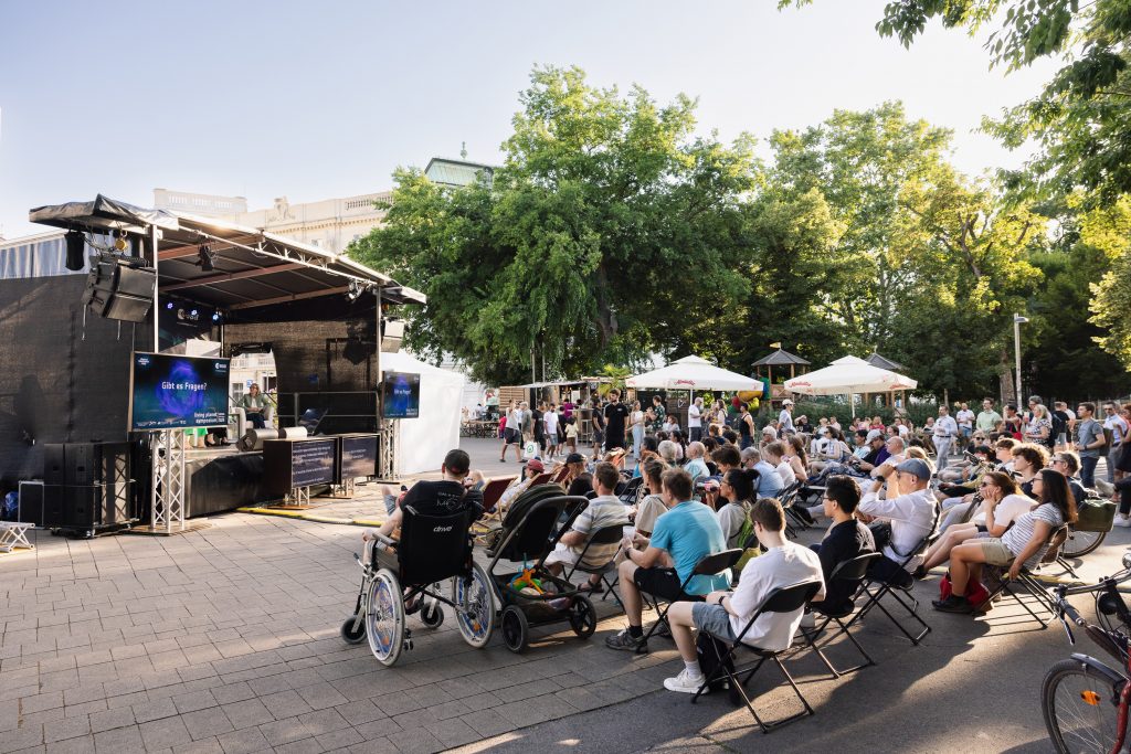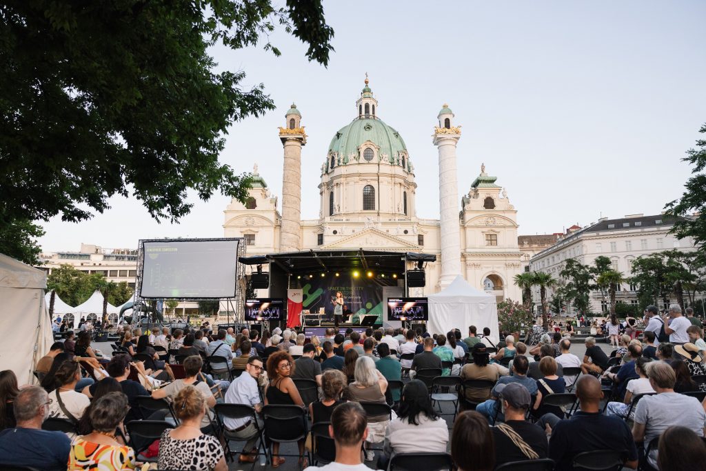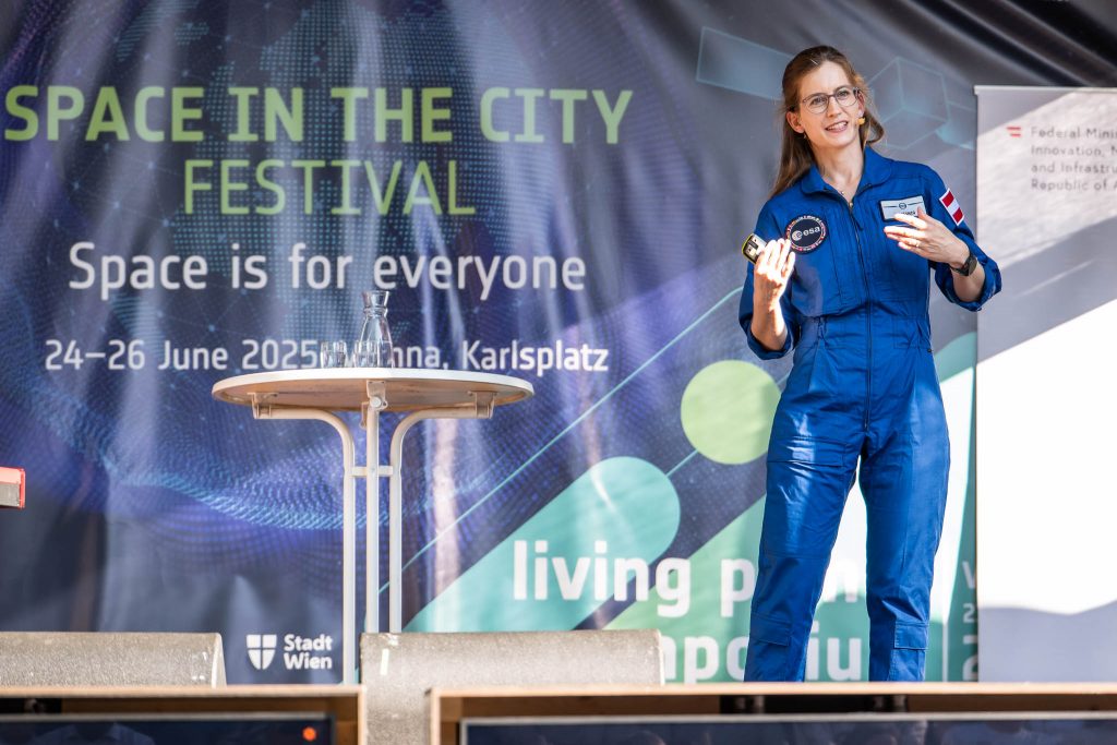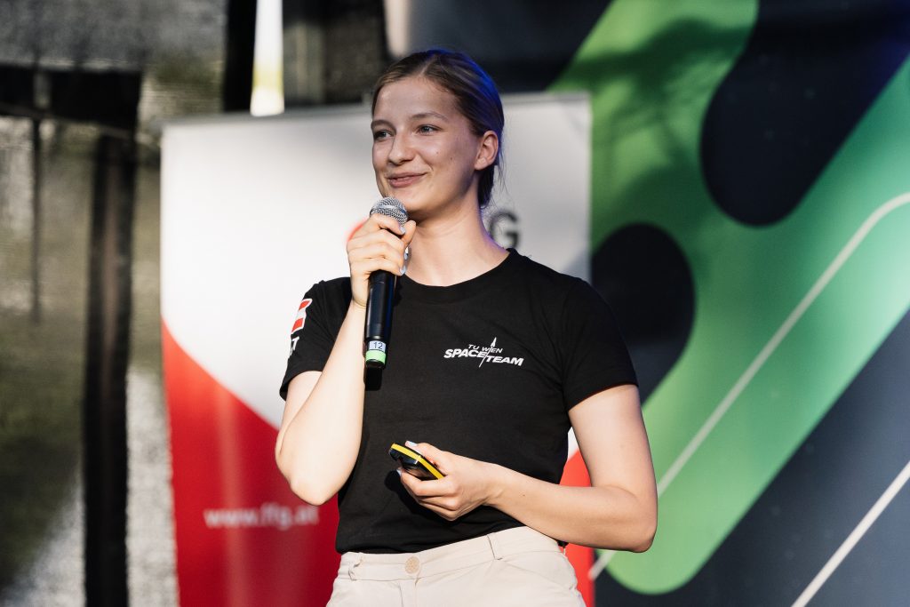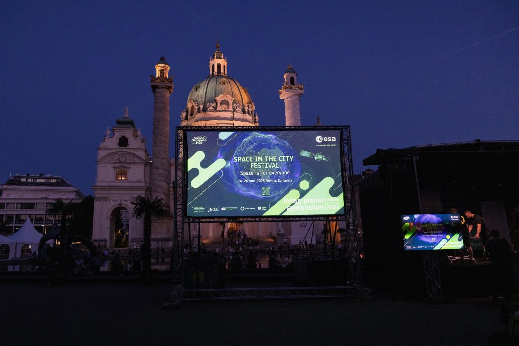 Beim Abendprogramm „Space for NextGen“ inspirierten weibliche Trailblazer des Weltraumbereichs die nächste Generation auf ihrem Karriereweg. Ruth Grützbauch und Florian Freistetter (bekannt von den Science Busters) begeisterten mit ihrem Bühnenprogramm „Das Universum“. Ein abendlicher Höhepunkt im Lichte der Karlskirche war der Vortrag der österreichischen „Astronautin“, Carmen Possnig. Die Reserveastronautin verdeutlichte, wie wir alle einen Platz im Weltraum finden können.