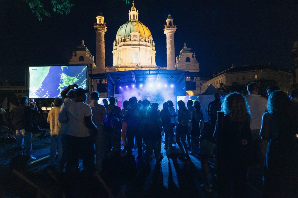 Bei der Installation „Wien in E – Was hört ein Satellit?“ wurden interaktive Klangbilder aus der Perspektive eines Satelliten geschaffen. Bei dem Live-Konzert der italienischen Pianistin Isabella Libra, die gemeinsam mit der österreichischen Künstlerin Eva Petrič Erdbeobachtungsbilder vertonte, und dem Live-DJ-Set von Harald Moser, Creative Mastermind der Ars Electronica, blieb keiner still sitzen. Als besonders Highlight brachten wir noch eine Fashion Show des italienischen Labels „earthncycle“ mit einer überraschenden Tanzperformance auf den Karlsplatz.